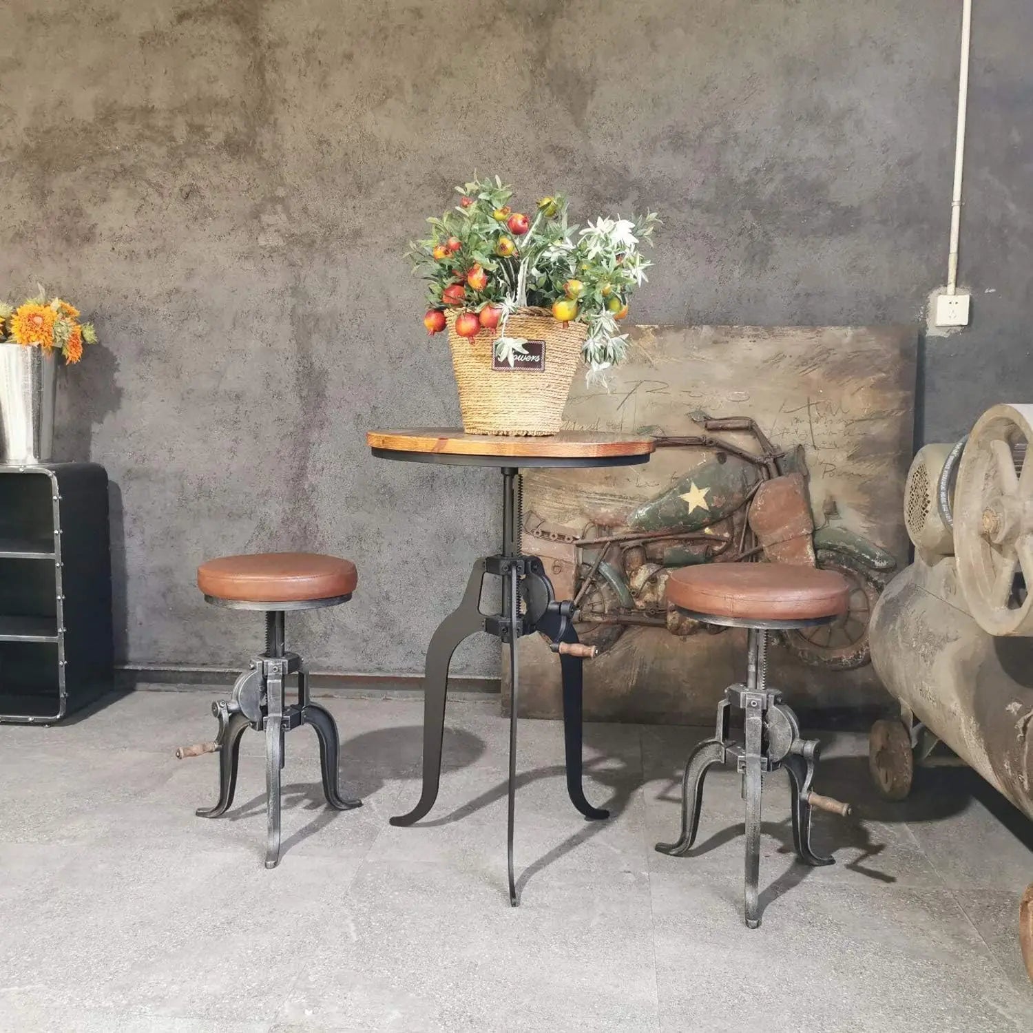 Anitque Bar Stool With Swivel Pu Seat Industrial Kitchen Island Chair Farmhouse Dining Stool Rustic Shop Stool Farmhouse Coffee